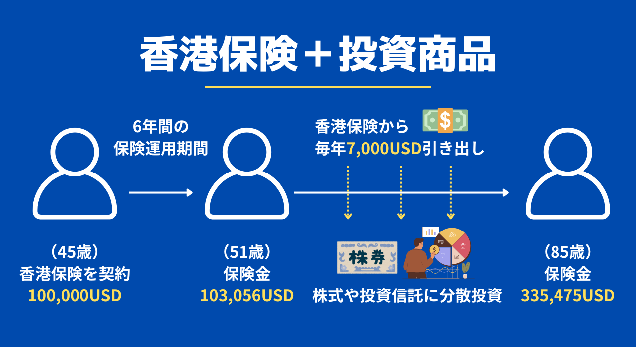 このように香港保険と投資商品を組み合わせることで投資元本を確保しながら、安心して投資を継続することができます。